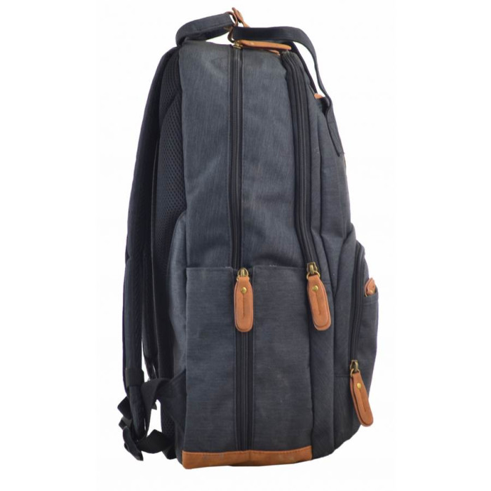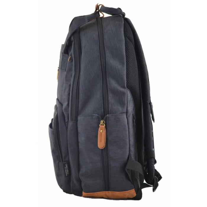 В рюкзаке - два основных отделения. Внутри - подвижные разделители с эластичной лентой, карман на молнии, карманы на липучке. Функционал рюкзака позволяет разместить и систематизировать большое количество гаджетов. На передней панели - три кармана на молнии, на задней - потайной карман и два боковых. Плотная спинка с вентилируемой сеткой «Air Mesh». Наплечные эргономичные ремни с дышащей сеткой. Съемный поперечный ремень. Брендированная подкладка и металлическая фурнитура, кожаные вставки и фиксатор ручек. Основной материал: полиэстер. Размер: M. Дополнительно: водоотталкивающий, наличие дополнительных ремней, наличие отделения для органайзера и телефона. Габариты: 30х45х14 см. Объем: 19 литров. Вес: 750 г.