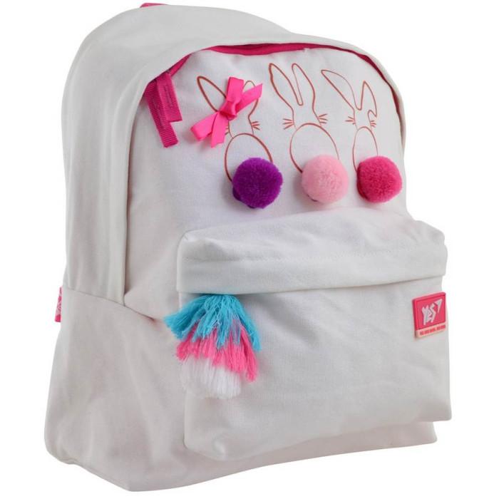 Cтильный рюкзак "Funny Bunnies" пригодится для любого случая. Карман на молнии сохранит ваши вещи в порядке и безопасности, а дополнительный карман для мобильного и карман для мелочи вместят все самые необходимые вещи. Рюкзак удобно держать или подвешивать - за ручку. Дополнительное украшение - аксессуар в виде кисточки. Основной материал: полотняная ткань, канвас.
