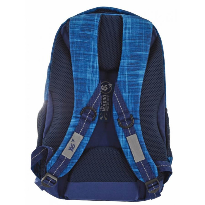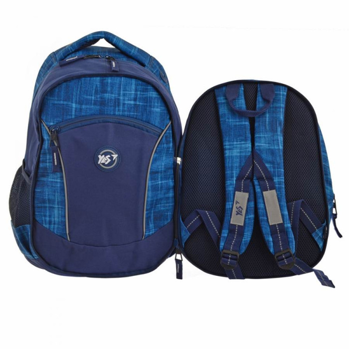 Отличная идея сочетать два рюкзака в одном нашла применение в изделии торговой марки YES. Такой рюкзак позволяет уйти от еще одной сумки, если требуется взять с собой не только все необходимые повседневные вещи, но и например, спортивную одежду для тренировок. Два рюкзака соединяются между собой застежкой молнией по контуру изделия. Фронтальный рюкзак является дополнительным и имеет два отделения. В первом отделении есть карман на молнии и карман для мобильного телефона. Спинка рюкзака уплотнена внутри вспененным полиэтиленом, снаружи обшита дышащим материалом Air Mesh. Дополнительный рюкзак снабжен ручкой-петлей. Второй рюкзак, основной, имеет одно отделение, внутри которого находится карман для планшета или ноутбука. Карман достаточно плотный, что защищает планшет или ноутбук от мелких повреждений поверхности. На фронтальной стороне основного рюкзака есть дополнительный карман на молнии. Спинка основного рюкзака помимо вспененного полиэтилена имеет внутри пластиковую панель для увеличения жесткости. С внешней стороны спинка дополнена подушечками для снижения давления на позвоночник. Подушечки обшиты дышащим материалом Air Mesh. Ручка и дно рюкзака дополнительно уплотнены. Основной рюкзак имеет два основных сетчатых кармана. Оба рюкзака, основной и дополнительный, имеют светоотражающие элементы на своих фронтальных панелях и плечевых ремнях. Материал: полиэстер.