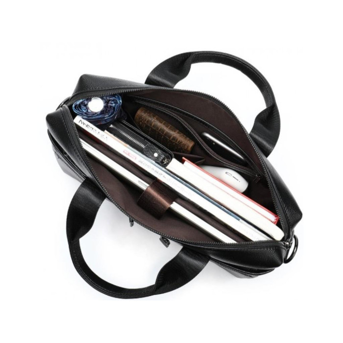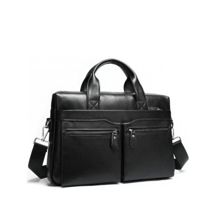 Мужская сумка для ноутбука Bexhill A25-7122A изготовлена из натуральной кожи черного цвета и имеет зернистую структуру.