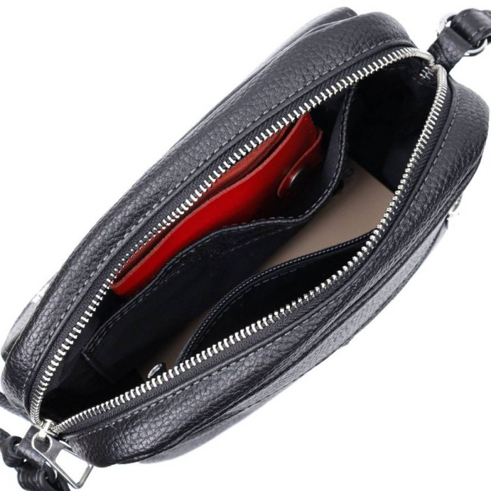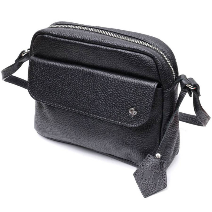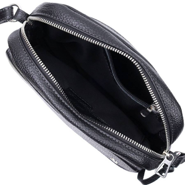 Трендовая женская сумка через плече, на каждый день. Аксессуар состоит из основного отделения, что закрывается на молнию, кармана открытого типа и кармана на молнии внутри, внешнего кармана на молнии, на тыльной стороне и накладного кармана на лицевой стороне, что закрывается клапаном на магниты. Выполнена из прочной и износостойкой натуральной кожи. Фурнитура серебряного цвета, регулируемый кожаный плечевой ремень. Упакована данная сумка в красивый фирменный чехол с ручками.