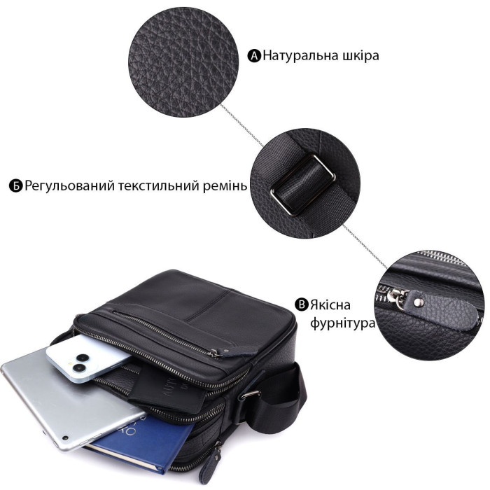 Эта мужская кожаная сумка с двумя отделениями, наружными карманами и ручкой — идеальное сочетание элегантности и максимальной функциональности для повседневной жизни и деловых встреч.