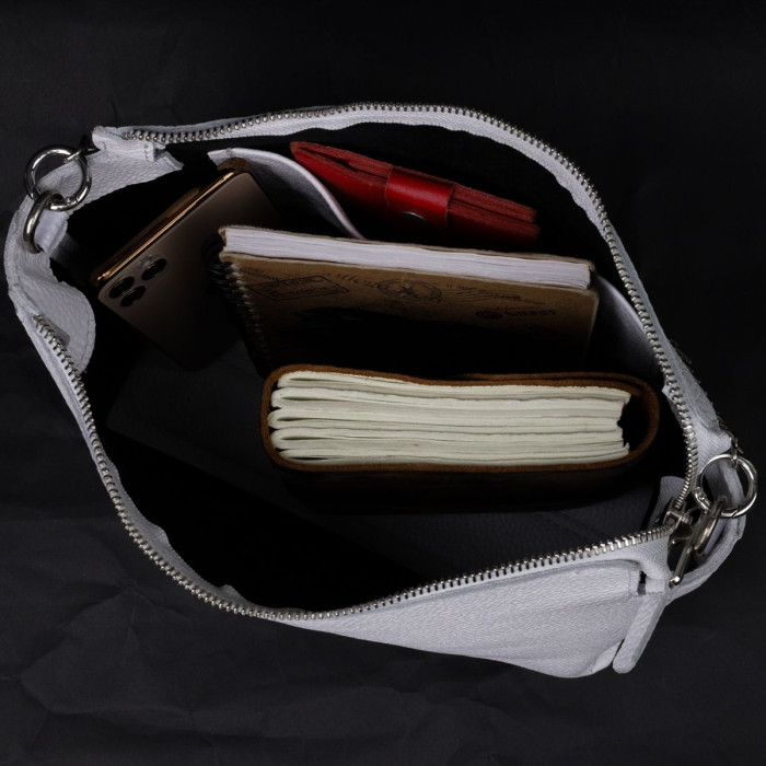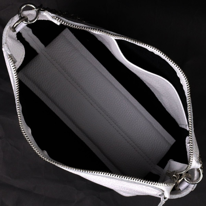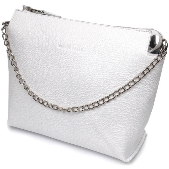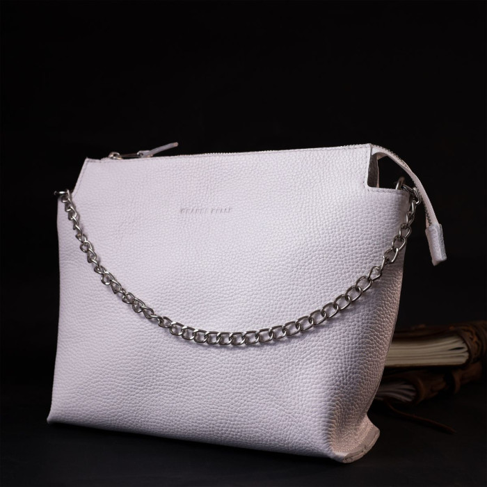 Отличная женская сумка из натуральной качественной кожи. Аксессуар состоит из основного отделения, что закрывается на молнию и кармана открытого типа внутри. Выполнена из прочной и износостойкой натуральной кожи. Носить данную сумку можно на плече при помощи регулируемого текстильного ремня, а также в руках при помощи съемного ремня-цепочки. Упакована данная сумка в красивый фирменный чехол с ручками.