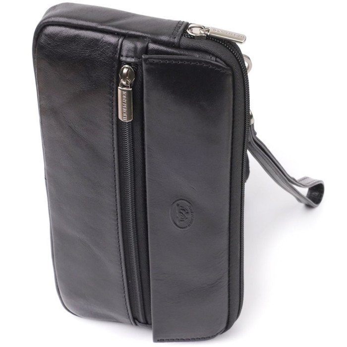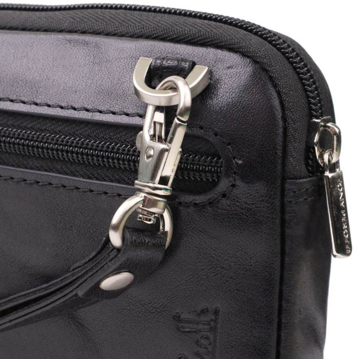 Мужской кожаный клатч от итальянского бренда Tony Perotti — стильный и практичный аксессуар для деловой и повседневной жизни. Съемный ремень на запястье, продуманное внутреннее и наружное пространство и надежная фурнитура делают клатч удобным и функциональным. Элегантный дизайн с тиснением бренда подчеркивает статус владельца, а высокое качество материалов делает изделие идеальным подарком.
