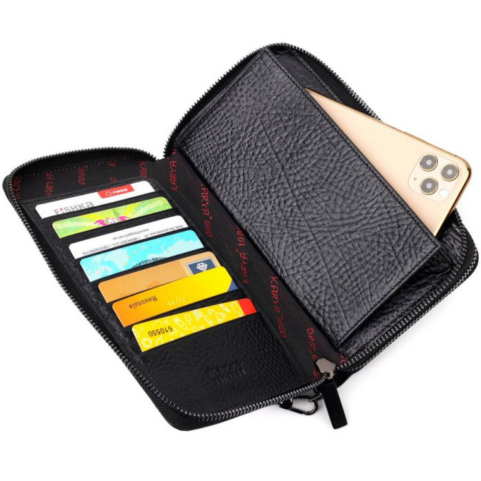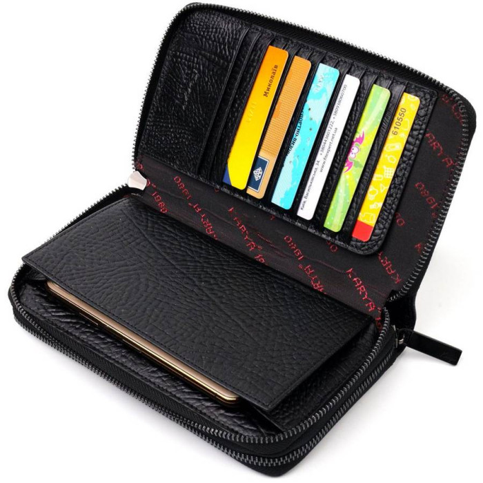 - во втором отделении расположено 13 отделений для карточек, скрытый отсек для документов, карман для мобильного телефона;