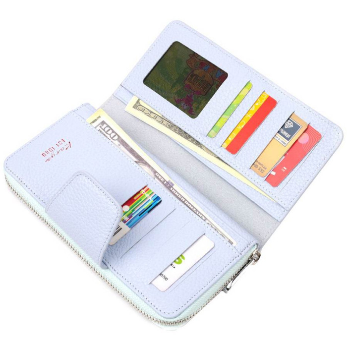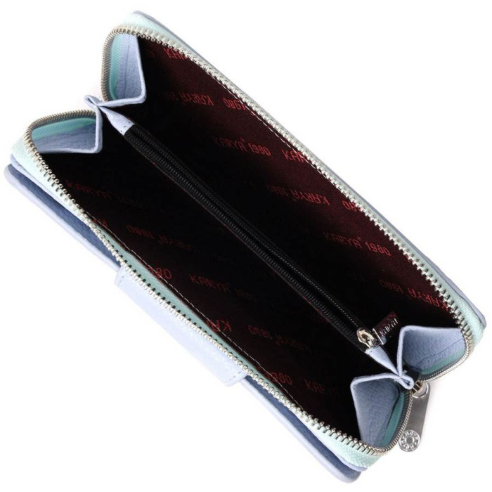 Интересный женский кошелек из качественной натуральной кожи. Изделие состоит из двух частей, первая - для купюр в не сложенном виде и монет, что закрывается на молнию, вторая для карточек и документов, закрывается клапаном на магнит. Упакован аксессуар в фирменную коробку и пакет бренда. Изделия из натуральной кожи всегда будут отличным подарком для близкого человека.