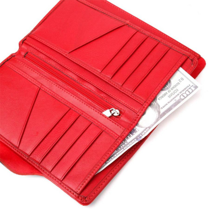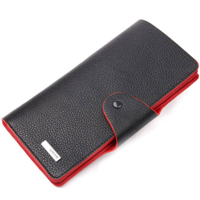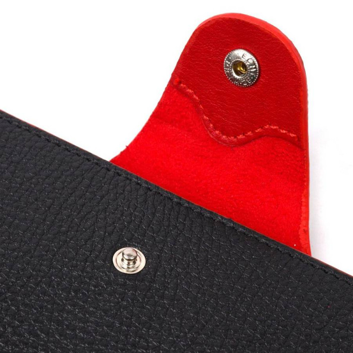 Красивый кошелек из натуральной кожи, в комбинации из двух цветов, снаружи – в черном цвете и внутри - красном. Складывается аксессуар пополам, с фиксацией на хлястик и кнопку. Качественная фурнитура дополняет и украшает изделие. Такой кошелек из натуральной кожи - это идеальный вариант на каждый день для тех, кто ценит качество, удобство и комфорт.