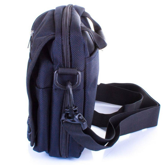 Количество основных отделений: 1. Сумка имеет прорезной большой накладной карман на липучке. Дополнительные отделения: 1. Помимо дополнительного отделения, на лицевой стороне аксессуара есть органайзер для мелочей (включает два держателя для карандаша или ручки, прорезной карман-сетку, два накладных кармана), а также карабин-ключница. На тыльной стороне есть большой накладной карман на липучке. Сумка имеет несъемную ручку, а также фиксатор-петлю, который помогает носить аксессуар на поясе. В комплект к сумке прилагается съемный плечевой ремень. Его длина может регулироваться при помощи пряжки до 162 см. Аксессуар пригоден для ношения в руке, на поясе, на плече и через плечо. Материал подклады: ткань. Материал изделия: полиэстер оксфорд. Цвет: темный синий, черный. Цвет фурнитуры: серебро. Размеры (X*Y*Z): 15*22,5*9 см. Ширину дна модели можно значительно увеличить, расстегнув специальную молнию у дна сумки. Объем: 8 л. Сумка закрывается при помощи молнии. Дополнительное отделение также закрывается на клапан с застежкой-фастексом. На клапане имеется прорезной карман на молнии. Документы формата А4 не помещаются в аксессуар. Изделие упаковано в полиэтиленовый пакет. Страна происхождения торговой марки Onepolar - Китай. Гарантия: 2 года. Внимание! В зависимости от настроек монитора оттенок изделия может отличаться от действительности. Пожалуйста, сделайте проверку цвета на нескольких компьютерах или уточните эту информацию у наших менеджеров.