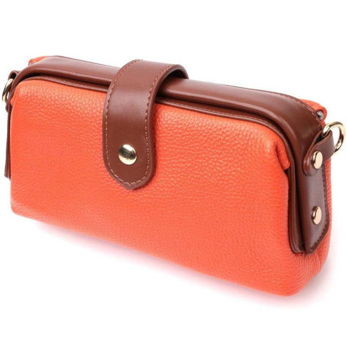 Привлекательная женская сумка-клатч с необычной защелкой, которая однозначно привлечет взгляды окружающих. Изделие пошито из качественной натуральной кожи, которая долго носится и не теряет свой первоначальный вид. Аксессуар состоит из одного основного отделения внутри которого расположен карман открытого типа и карман на молнии. Носить сумку можно в руке как клатч, на плече и через плечо, для этого имеется кожаный съемный ремень. В изделии использована качественная фурнитура цвета желтого золота.