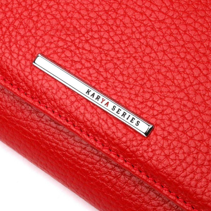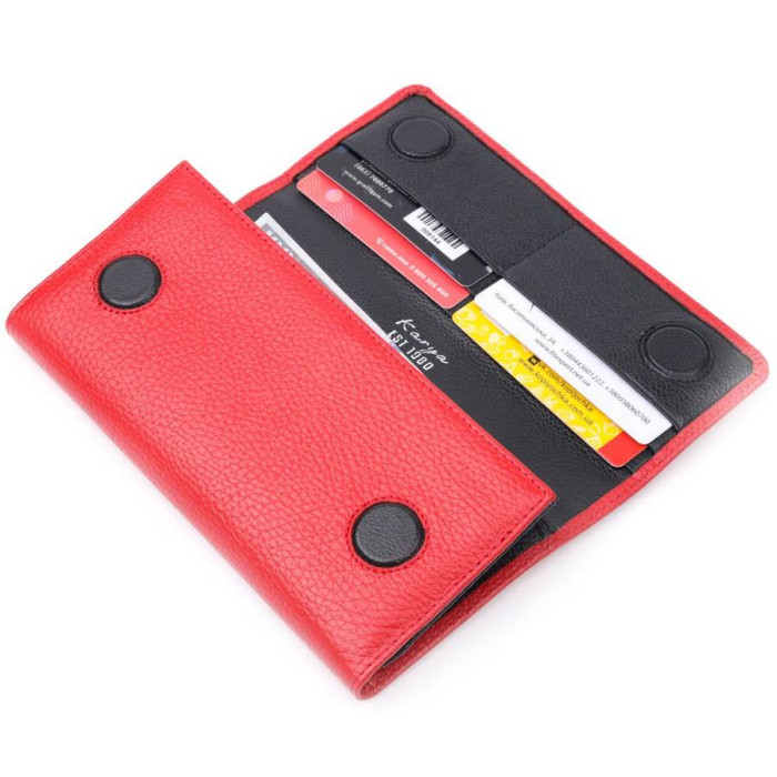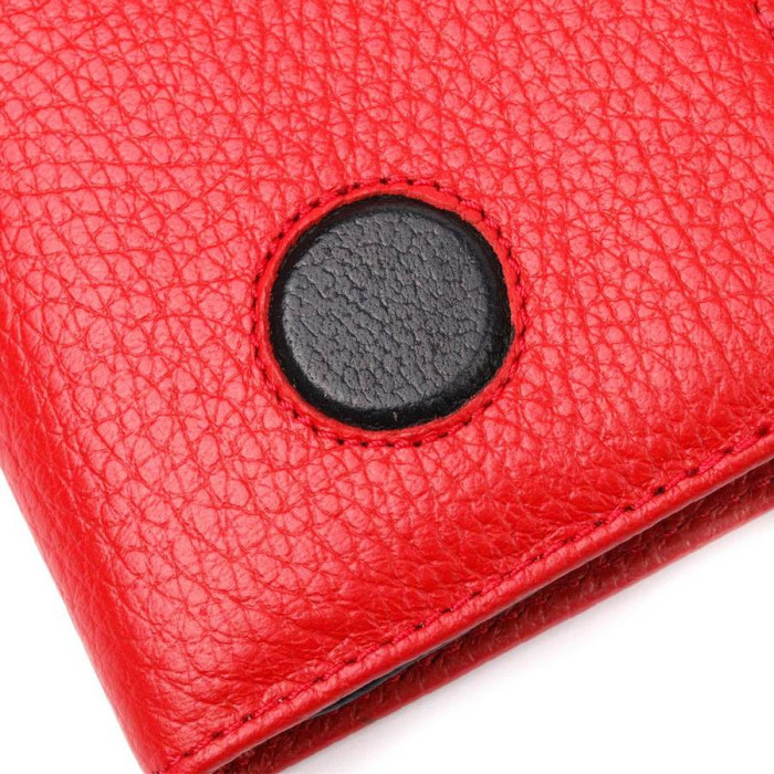 Яркий женский кошелек из натуральной зернистой кожи, в красивом красном цвете. Складывается аксессуар пополам и закрывается клапаном на магниты. Особенностью данного аксессуара есть наличие блока для кредитных карточек, что закрывается на кнопку. Такой кошелек из натуральной кожи - это идеальный вариант на каждый день для тех, кто ценит качество, удобство и комфорт, а также будет отлично дополнять Ваш повседневный образ.