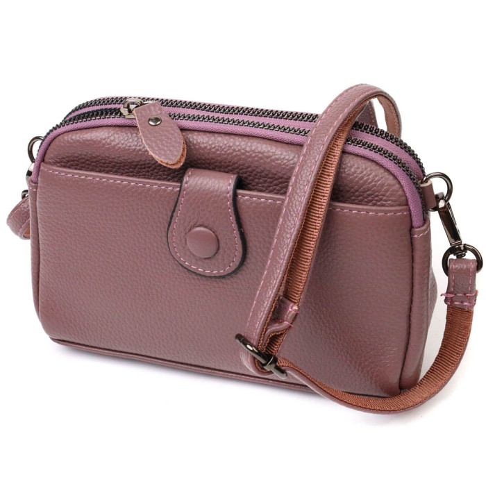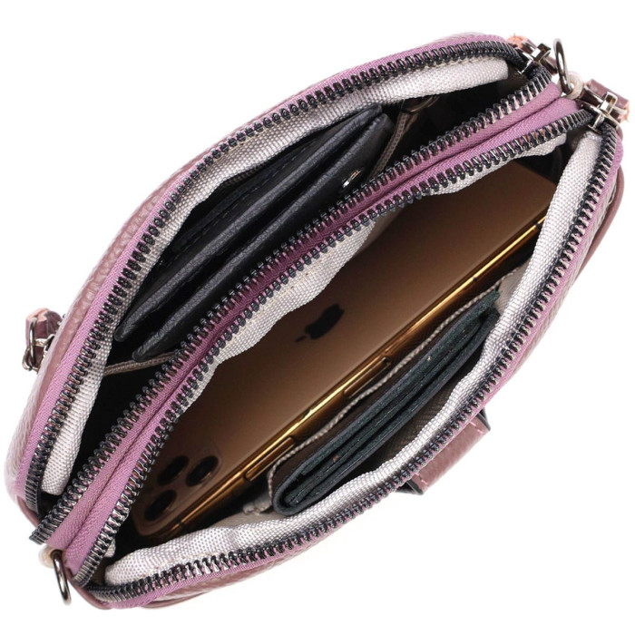 Оригинальная небольшая сумка-клатч из натуральной мягкой кожи. Изделие очень удобное, можно носить на плече, через плечо, под рукой и на кисти. Модель дополнена фурнитурой цвета темного серебра. Аксессуар имеет два основных отделения на молниях, в которых два кармашки - на молнии и один открытого типа, также снаружи находятся два кармана. В комплекте к сумке идет съемный плечевой ремень и съемный кистевой ремень. Закрывается модель на молнию.