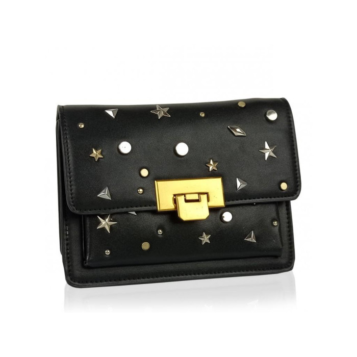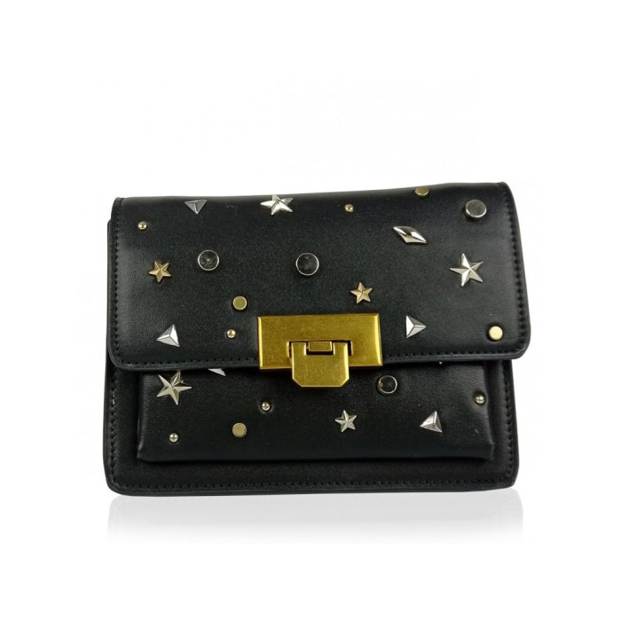 Женская маленькая сумка W16-808A изготовлена из искусственной кожи и украшена металлическими украшениями.