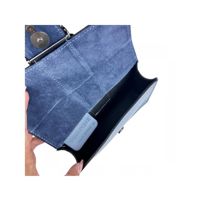 Женская маленькая сумка через плечо Firenze Italy F-IT-054-11BL изготовлена из натуральной гладкой кожи голубого цвета.