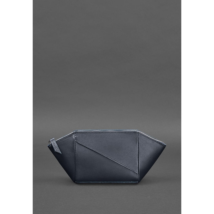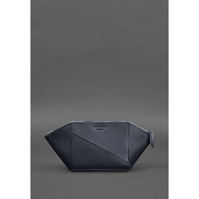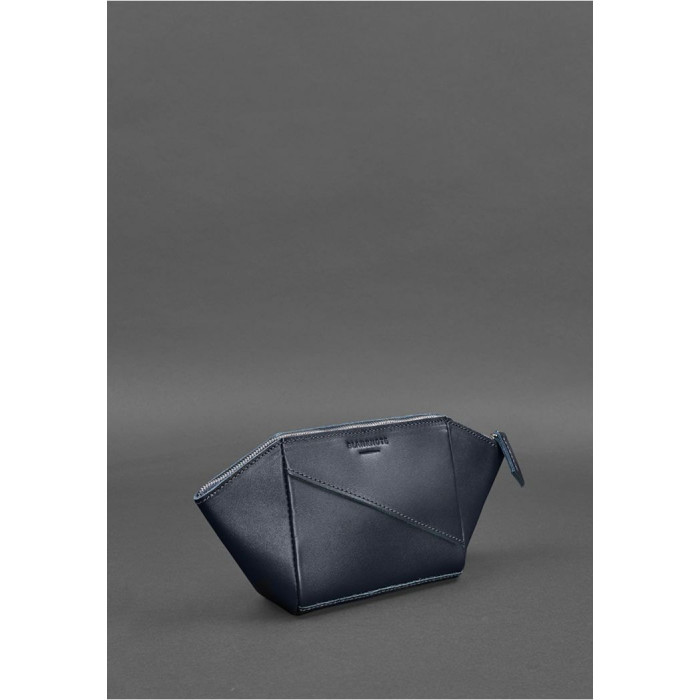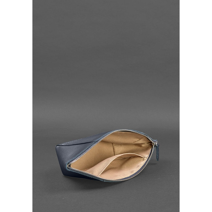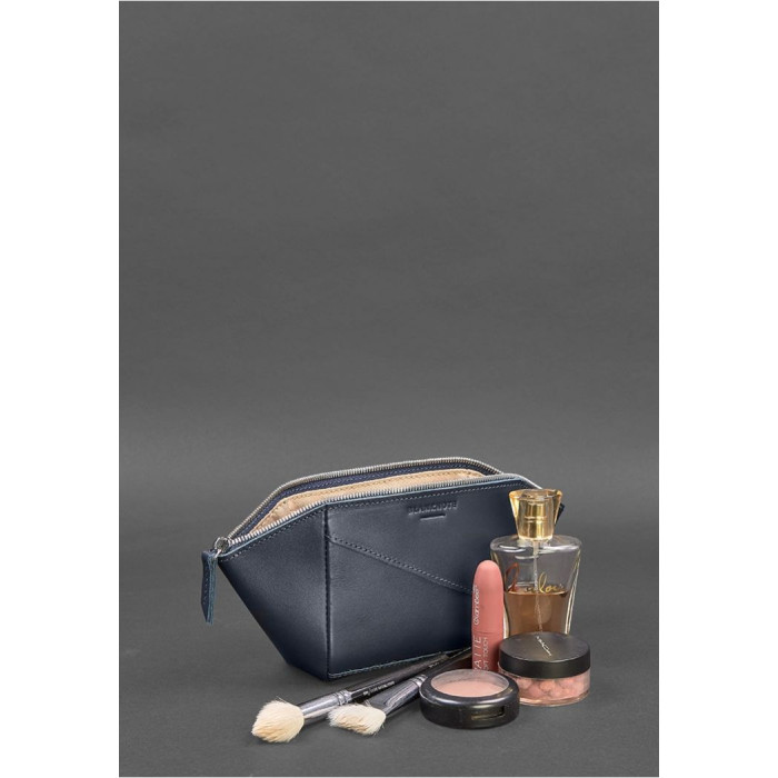 Женская косметичка в темно-синем цвете изготовлена из плотной натуральной кожи. Размер отлично подойдет для ежедневного использования, а также такой аксессуар будет незаменим в путешествиях. Косметичка не очень большая, но достаточно просторная, чтоб уместить внутри все необходимое для поддержания макияжа.