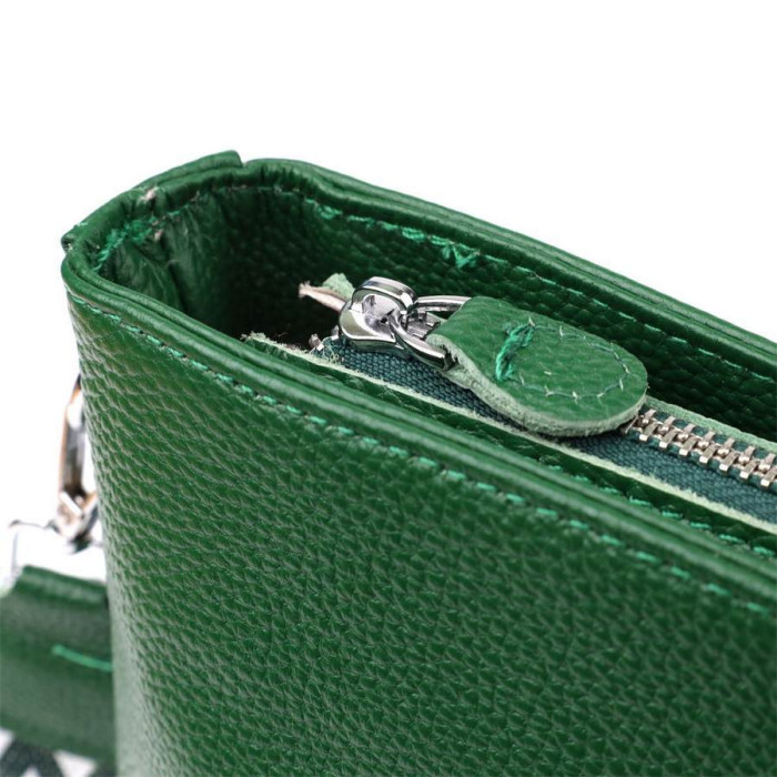 Оригинальная и стильная сумка из натуральной кожи в насыщенном зелёном цвете — эффектный акцент в вашем повседневном или деловом образе. Модель оснащена одним основным отделением, которое надёжно закрывается на молнию. Внутри расположены два удобных кармана: потайной на молнии для хранения ценных мелочей и открытый карман — для предметов, к которым нужен быстрый доступ.