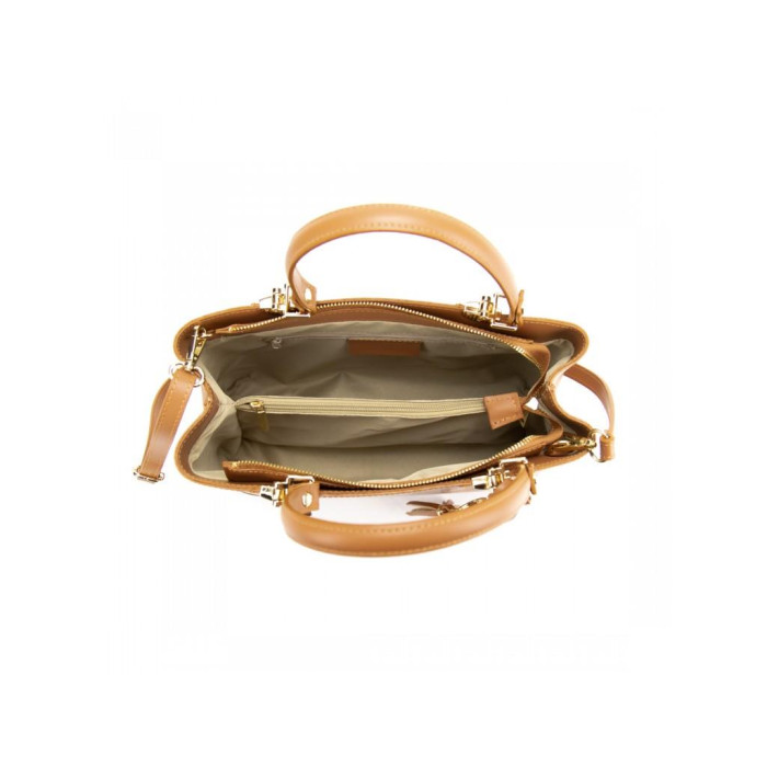 Женская сумка Firenze Italy F-IT-7603-1C изготовлена из натуральной кожи коричневого цвета с гладкой структурой.