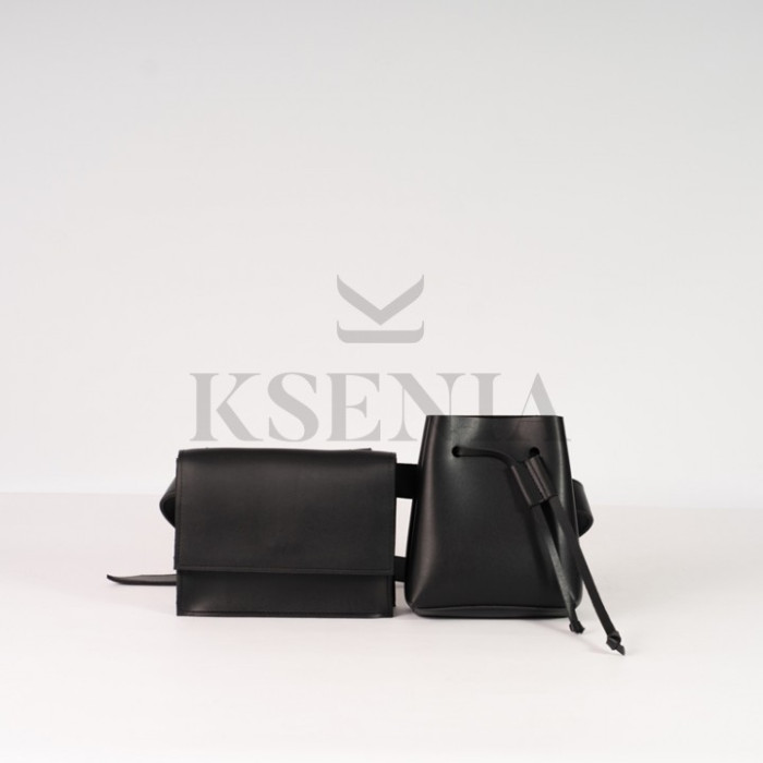 Две маленьких сумки на поясном ремне.