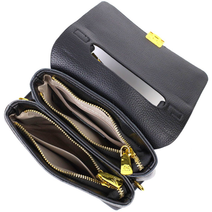 Удобная сумка из натуральной мягкой кожи высокого качества. Изделие очень удобное, можно носить на плече, через плечо и в руке. Модель дополнена фурнитурой цвета желтого золота. Аксессуар имеет два основных отделения на молниях, в которых два кармашки - на молнии и открытого типа, также модель имеет съемный плечевой ремень. Закрывается модель клапаном на механическую застежку. Идеальный вариант для любой девушки, на любой сезон.