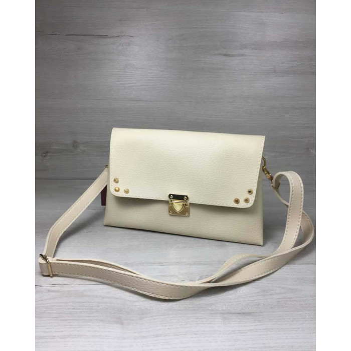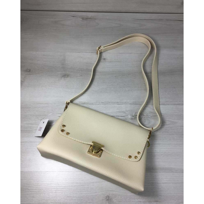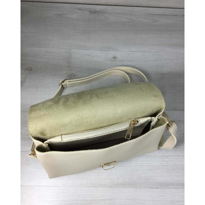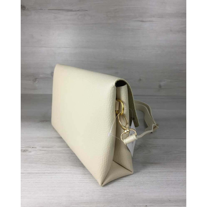 Молодежная сумка клатч бежевая Келли, изготовлена из искусственной кожи. Крышка открывается при помощи защелки. Внутри имеет вшитую косметичку на молнии. В комплекте есть плечевой ремешок.
