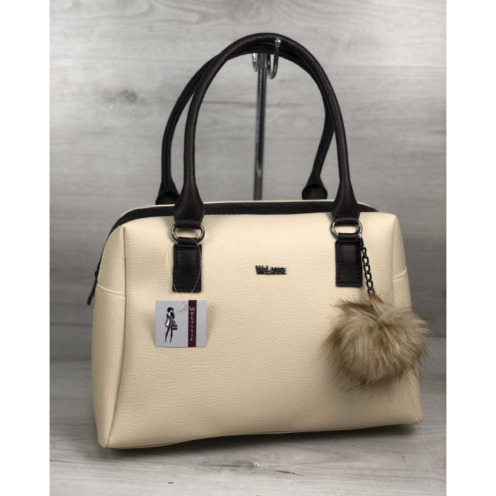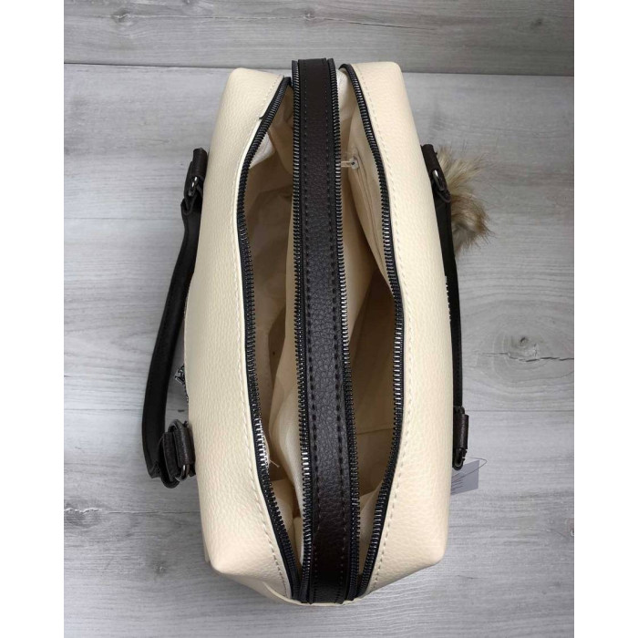 Сумка украшена пушком.