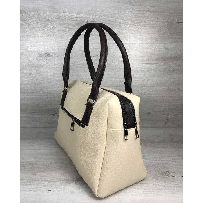 Женская, молодежная сумка Агата, изготовлена из искусственной кожи высокого качества. Имеет плотную подкладку. Два отдельных отделения, которые открываются при помощи молний. Снаружи, есть дополнительный карман на молнии для мелких предметов.