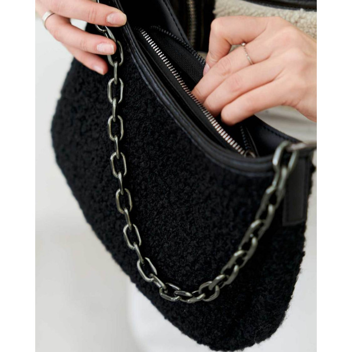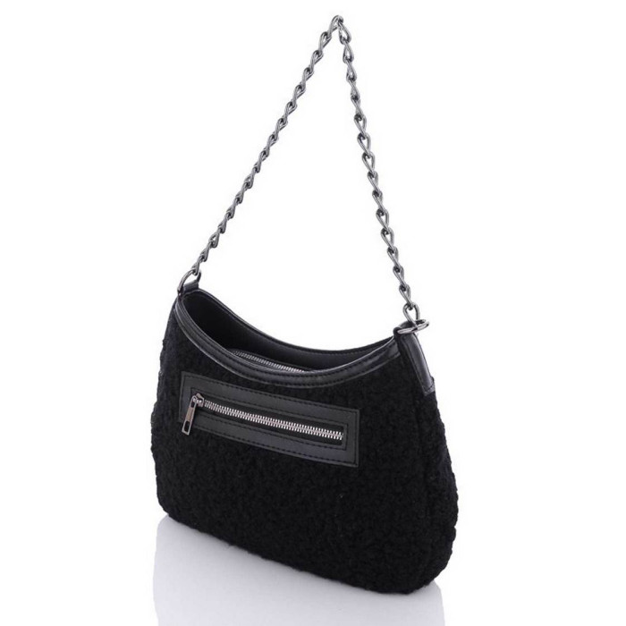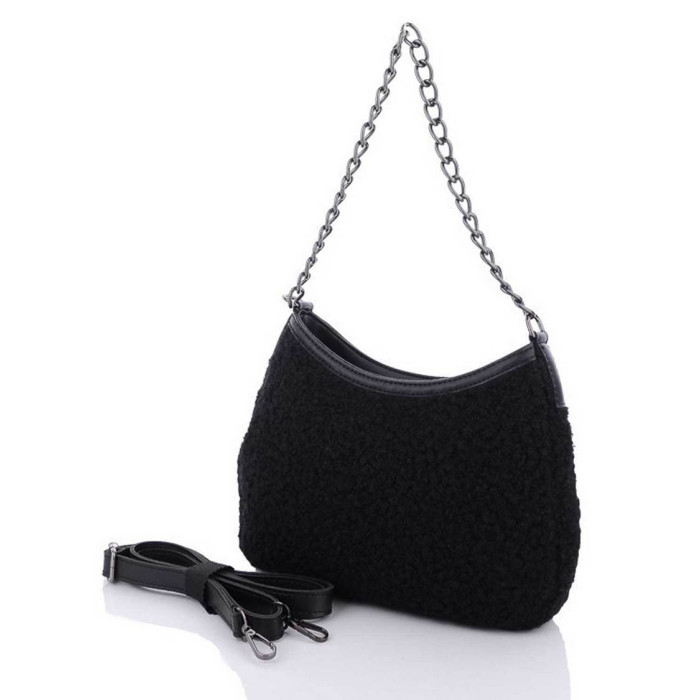 Сумка женская 68304 от производителя «Welassie» Украина, цвет черный, материал сумки искусственный мех и экокожа высокого качества. Сумка открывается при помощи молнии. Сумка на плотной, качественной подкладке. Внутри имеет два кармана: открытый и на молнии. Также имеется карман для мелких предметов снаружи. В комплекте длинный плечевой ремень, длиной 135 см.