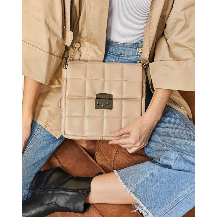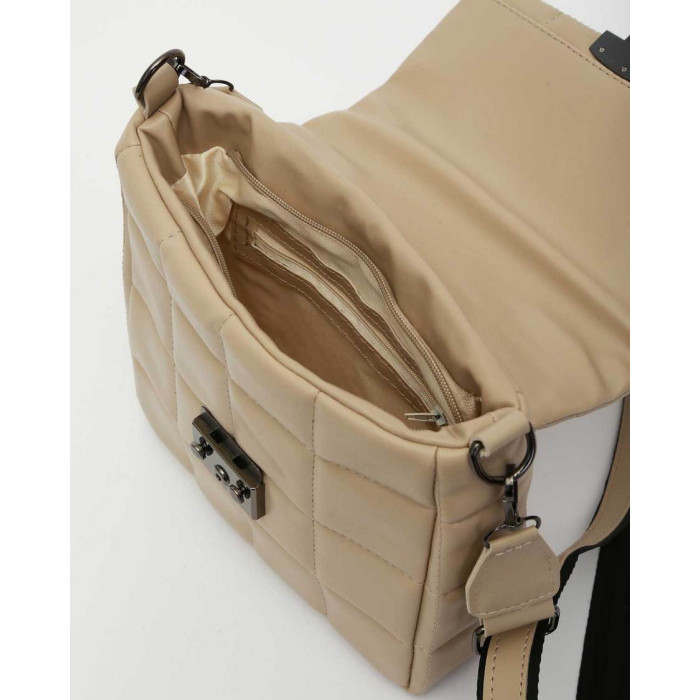 Сумка женская стеганая 67709 из экокожи высокого качества. Сумка открывается при помощи замка(два цилиндрических выступа навстречу друг другу) и молнии. Внутри сумка на плотной подкладке. Сумка имеет два кармана: на молнии и открытый. Также имеется наружный карман для мелких предметов. Плечевой ремень шириной 3 см. укреплен стропой и регулируется под разную длину, максимальная длина 135 см.