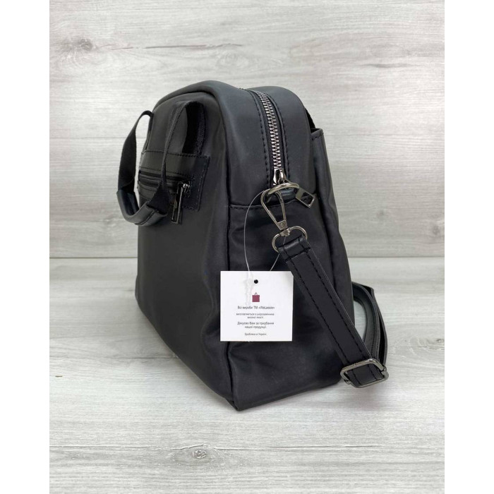 Женская сумка 62004, производитель Welassie (Украина) из высококачественного нейлона. Сумка эластичная, мягкая, водоотталкивающая. Центральное отделение открывается при помощи молнии. Дополнительно имеется отделение на магните. Сумка имеет один карман спереди и два сзади на молнии. Внутри сумка на подкладке, имеет два кармана: на молнии и открытый. В комплекте есть регулируемый плечевой ремешок длиной 128 см., что позволяет носить сумку как кросс-боди.