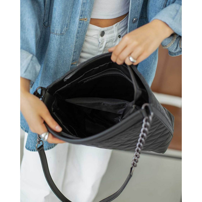 Сумка женская 65904 производитель "Welassie" Украина выполнена из экокожи высокого качества. Сумка открывается при помощи молнии, вмещает формат А4. Внутри сумка на плотной подкладке, имеет два отделения, между которыми вшита косметичка. Также внутри есть два кармана: открытый и на молнии. Длина плечевого ремня 80 см.