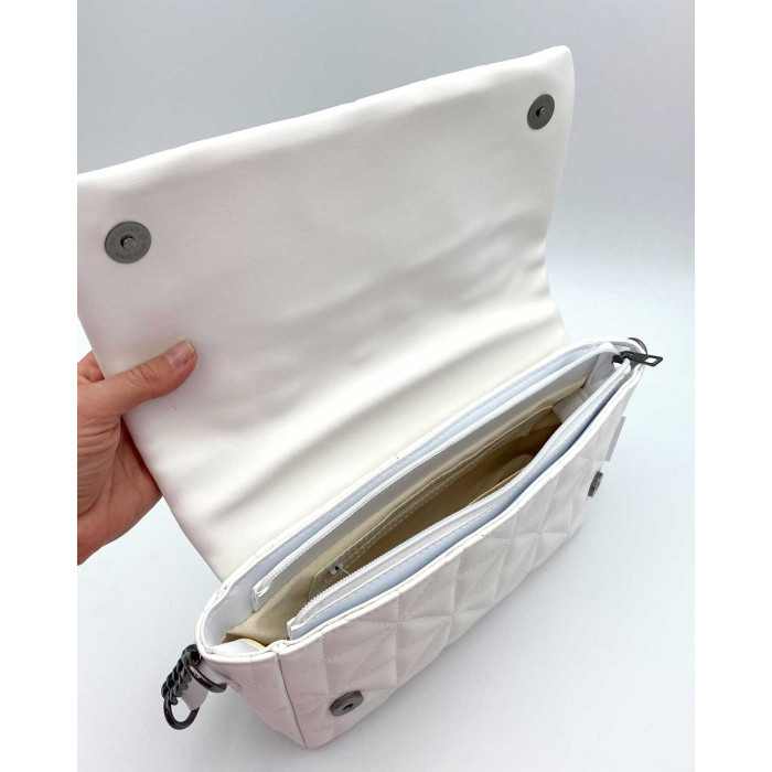 Сумка женская стеганая 67900 из экокожи высокого качества. Сумка открывается при помощи молнии и клапана. Внутри сумка на плотной подкладке. Сумка имеет два кармана: на молнии и открытый. Ручка сумки украшена цепочкой. Плечевой ремень регулируется под разную длину, максимальная длина 135 см.
