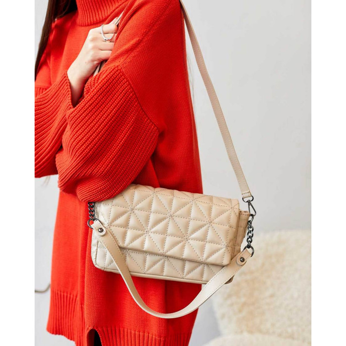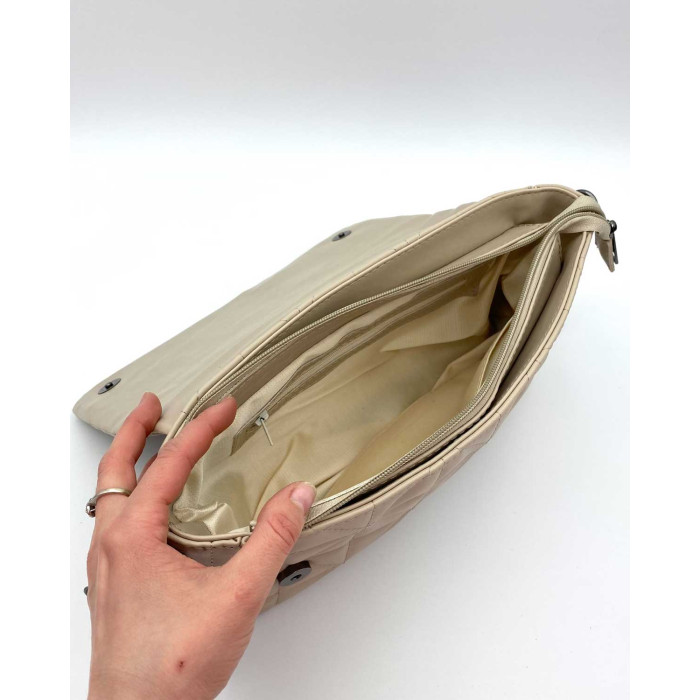 Сумка женская стеганая 67909 из экокожи высокого качества. Сумка открывается при помощи молнии и клапана. Внутри сумка на плотной подкладке. Сумка имеет два кармана: на молнии и открытый. Ручка сумки украшена цепочкой. Плечевой ремень регулируется под разную длину, максимальная длина 135 см.