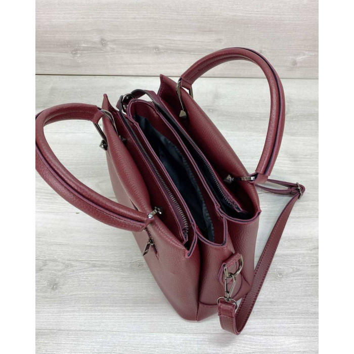 Женская стильная сумка 32527 Welassie (Украина) из экокожи высокого качества. Материал морозостойкий, эластичный, мягкий. Открывается при помощи молнии, внутри три отделения. В центральном отделении есть карман на молнии. Снаружи есть карман на молнии. Внизу 4 хольнитены и жесткое дно, благодаря чему сумка устойчивая. Ручки сумки украшены по бокам шипами. Длина плечевого ремня 120 см.