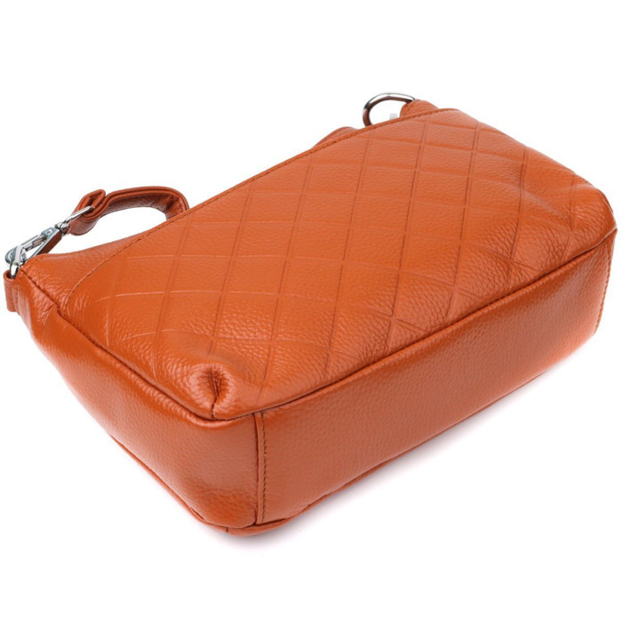 Стильная и практичная сумка из натуральной рыжей кожи, которая станет ярким акцентом в вашем образе. Основное отделение сумки закрывается на надежную молнию, обеспечивая безопасность ваших вещей. Внутри расположены удобный потайной карман на молнии — идеальное место для хранения ценных мелочей, и карман открытого типа для быстрого доступа к необходимым предметам.