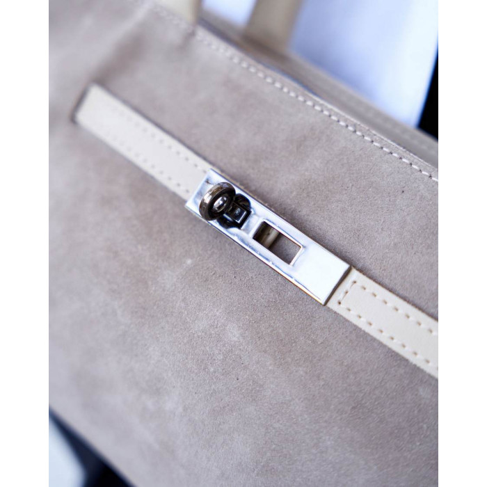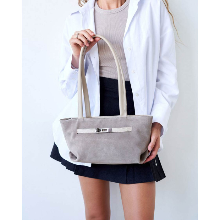 Сумка женская 15159 от производителя «Welassie» Украина, цвет бежевый, материал сумки экокожа высокого качества со встакой с натуральной замши. Сумка открывается при помощи молнии. Внутри сумка имеет один открытый карман и на змейке