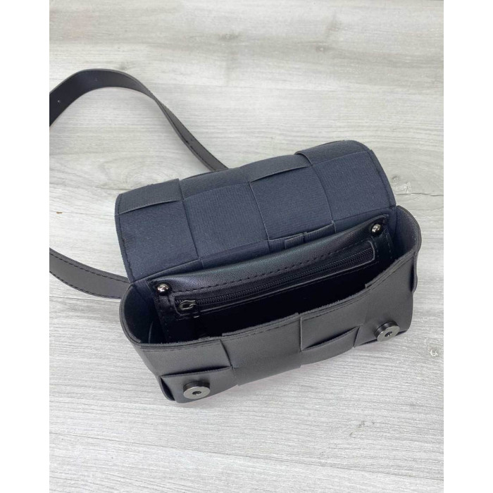Недорогая качественная женская сумка 63904 (Украина) от производителя Welassie, сумка в стиле Bottega из экокожи высокого качества. Сумка имеет одно отделение. Открывается при помощи магнита. Внутри сумка без подклада, имеет карман на молнии. Длина поясного ремня 112 см., что позволяет носить сумку на поясе, через плечо, в руках: ремень снимается. Размеры сумки: длина 19 см., ширина 6 см., высота 10см.