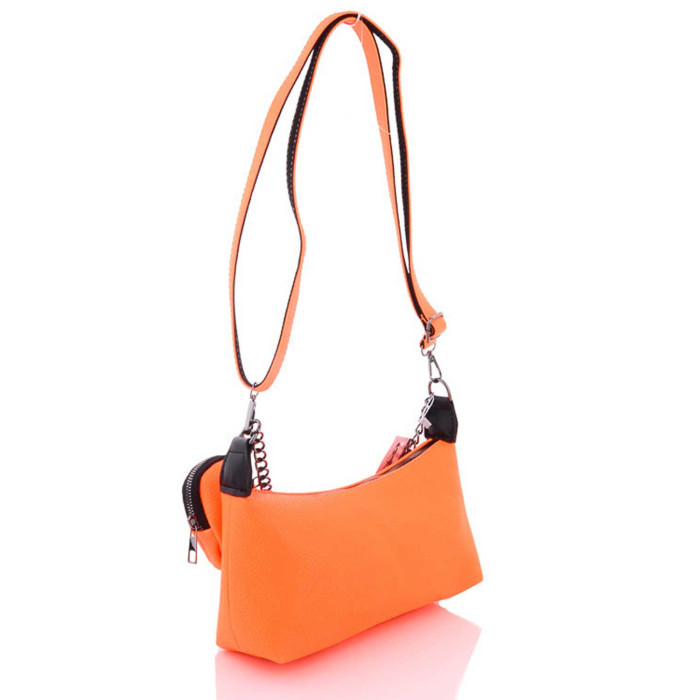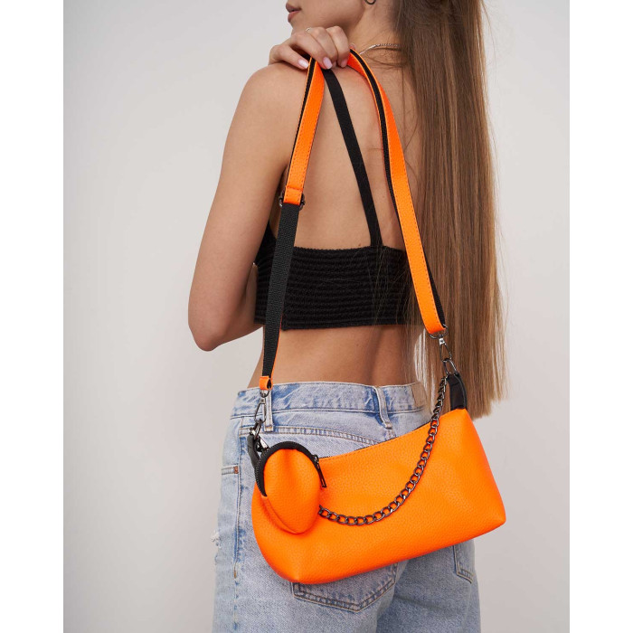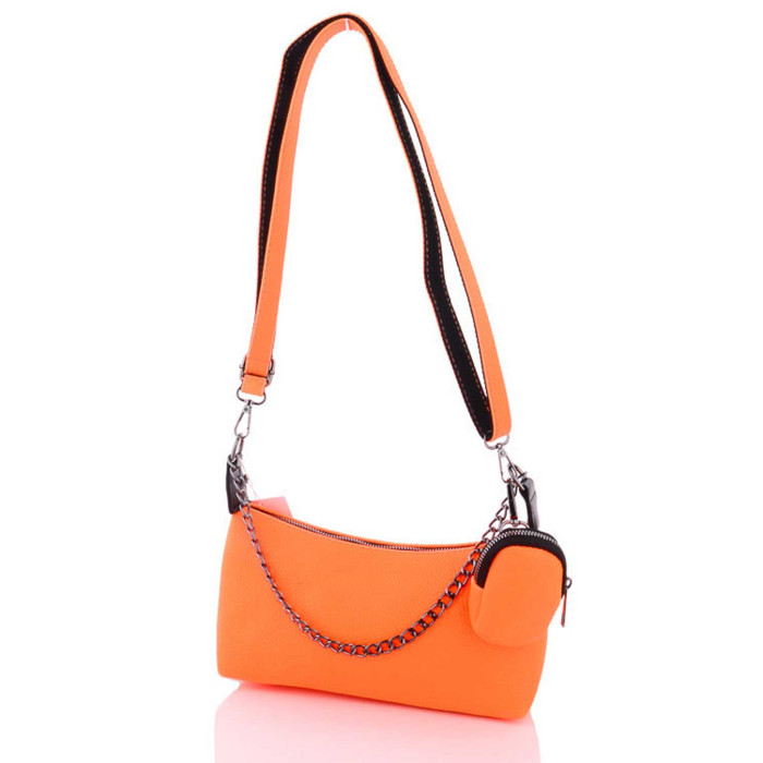 Модная женская сумка 64823 от производителя «Welassie» Украина, цвет оранжевый, материал сумки экокожа высокого качества. Сумка открывается при помощи молнии. Внутри сумка на плотной подкладке, есть открытый карман для мелких предметов. Плечевой ремень укреплен стопой, регулируется под разную длину, максимальная длина 140 см. Сумка украшена цепочкой, которую можно использовать как ручку. Длина цепочки 41 см. В комплекте есть маленькая сумочка-кошелек на молнии с размерами: длина 7 см., ширина 3 см., высота 10 см.