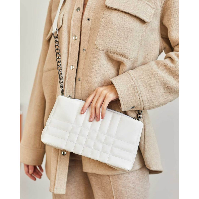 Сумка женская стеганая 60500 из экокожи высокого качества. Сумка открывается при помощи молнии. Внутри сумка на плотной подкладке. Сумка имеет два кармана: на молнии и открытый. Ручка сумки украшена цепочкой. Плечевой ремень регулируется под разную длину, максимальная длина 135 см.