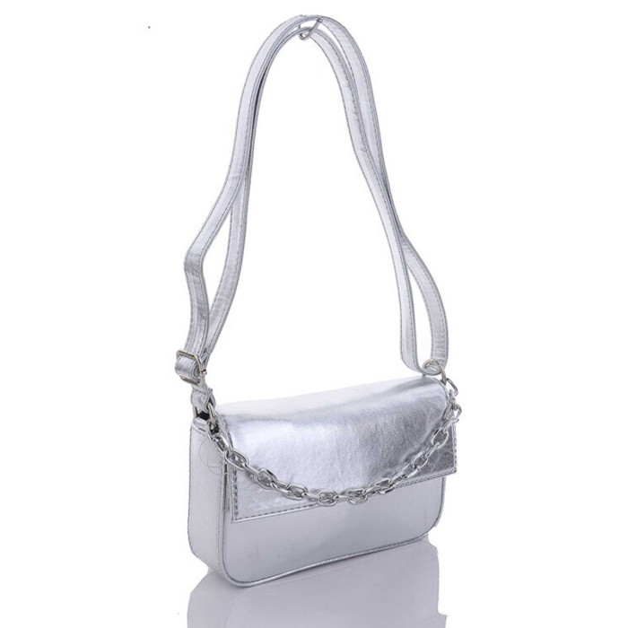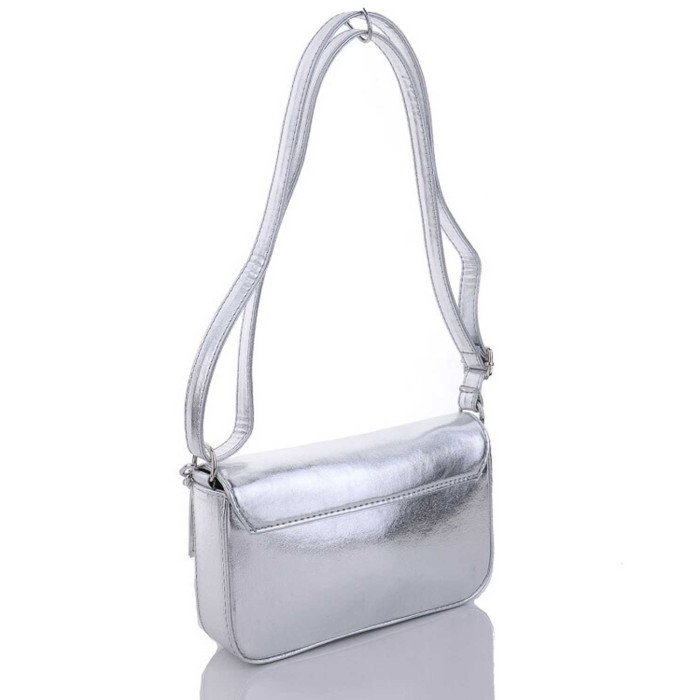Сумка женская 69207 от производителя «Welassie» Украина, цвет серебряный, материал сумки экокожа высокого качества. Сумка открывается при помощи магнитов, украшена цепочкой. Внутри сумка имеет один открытый карман.
