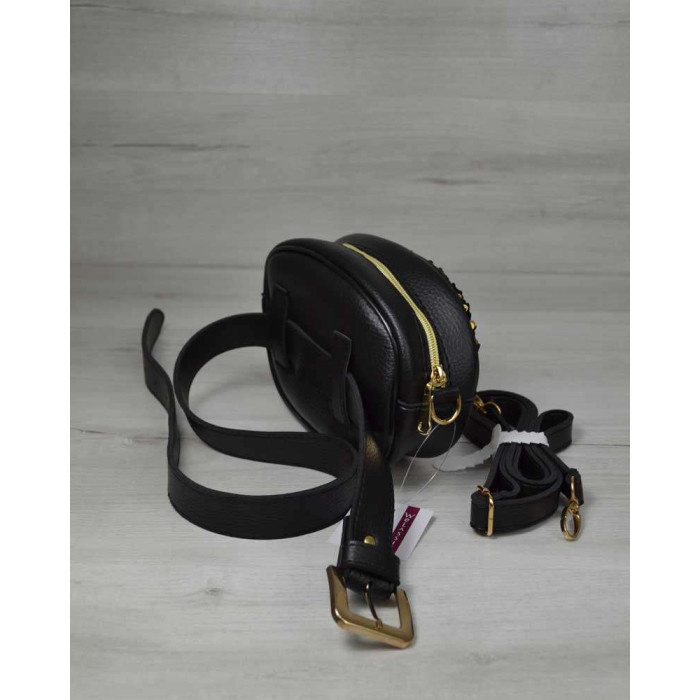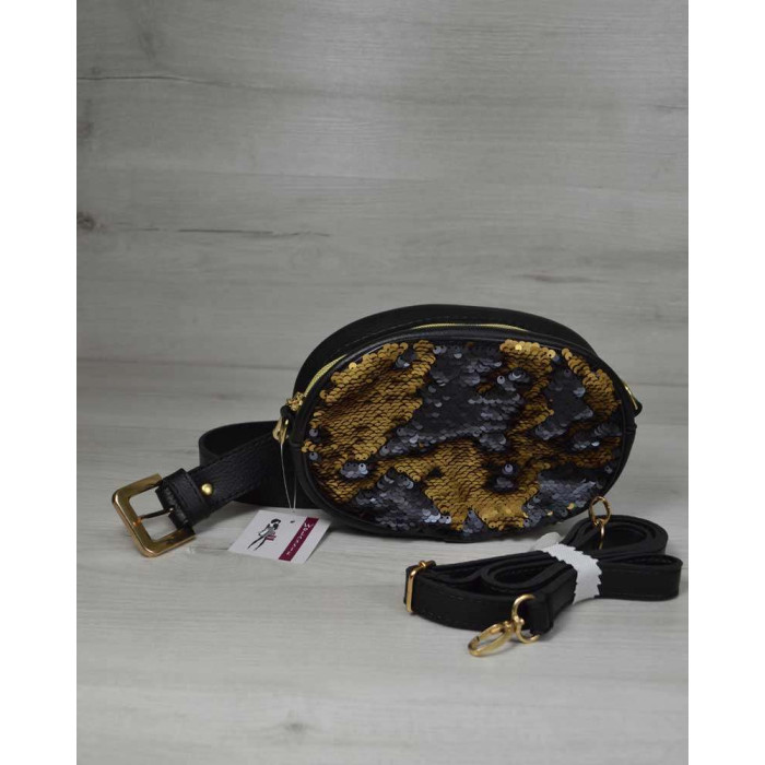 Молодежная сумка на пояс - клатч черный с золотом WeLassie, изготовлена из искусственной кожи. Имеет одно отделение на молнии. Внутри есть карман. Дополнительно в комплекте есть плечевой ремешок