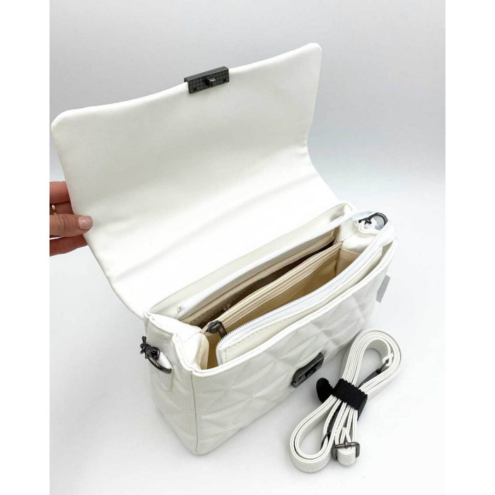 Сумка женская стеганая 65620 от производителя «Welassie» Украина из экокожи высокого качества. Сумка открывается при помощи замка и молнии. Внутри сумка на плотной подкладке. Вшитая посередине косметичка делит сумку на две части. Также имеет два кармана: на молнии и открытый. Ручка сумки украшена цепочкой. Замок сумки открывается нажатием на кнопку сбоку замка. Плечевой ремень регулируется под разную длину, максимальная длина 135 см.