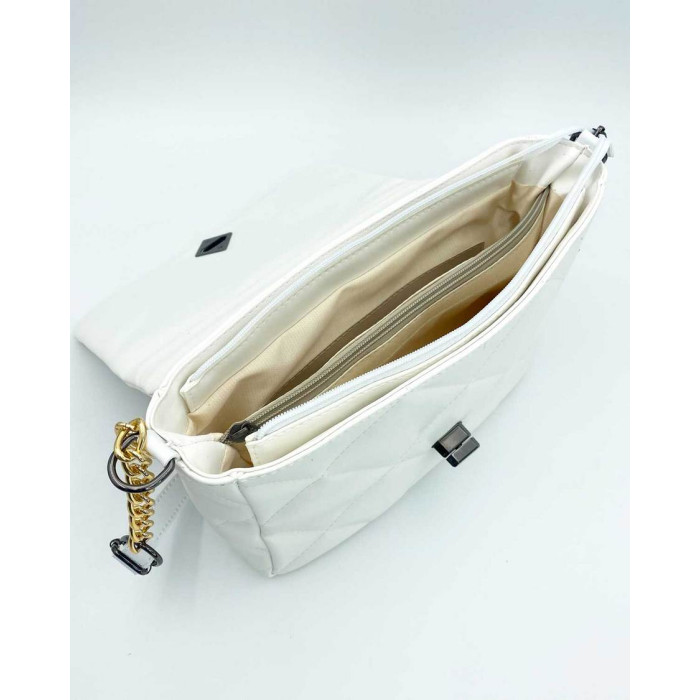 Сумка женская стеганая 66500 от украинского производителя из экокожи высокого качества. Сумка открывается при помощи замка и молнии. Внутри сумка на плотной подкладке. Вшитая посередине косметичка делит сумку на две части. Также имеет два кармана: на молнии и открытый. Ручка сумки украшена цепочкой разного цвета, что придает сумке свою уникальность и неповторимость. Плечевой ремень регулируется под разную длину, максимальная длина 135 см.