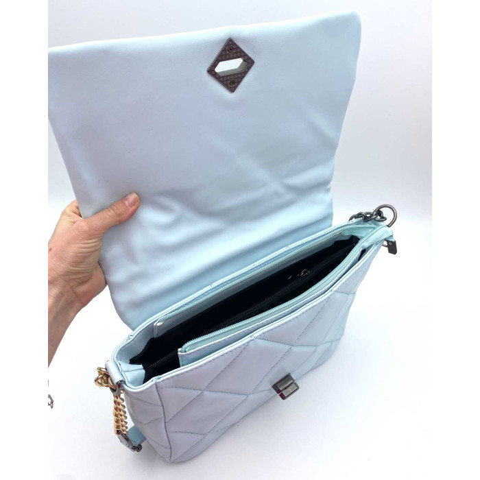 Сумка женская стеганая 66503 от украинского производителя из экокожи высокого качества. Сумка открывается при помощи замка и молнии. Внутри сумка на плотной подкладке. Вшитая посередине косметичка делит сумку на две части. Также имеет два кармана: на молнии и открытый. Ручка сумки украшена цепочкой разного цвета, что придает сумке свою уникальность и неповторимость. Плечевой ремень регулируется под разную длину, максимальная длина 135 см.