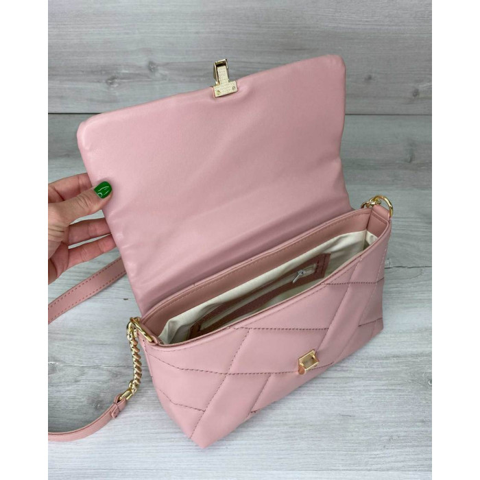 Сумка женская стеганая 64610 от производителя "Welassie" Украина из экокожи высокого качества. Сумка открывается при помощи замка. Внутри сумка на плотной подкладке, имеет два кармана: на молнии и открытый. Плечевой ремень украшен цепочкой, регулируется под разную длину, максимальная длина 140 см.