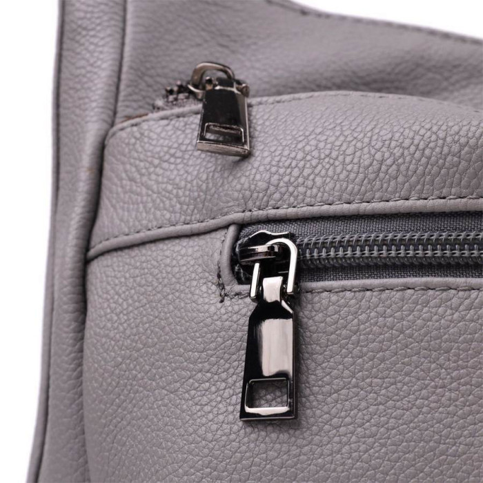 Серая кожаная сумка с тремя отделениями — это утончённый акцент в вашем образе и надёжный спутник на каждый день.