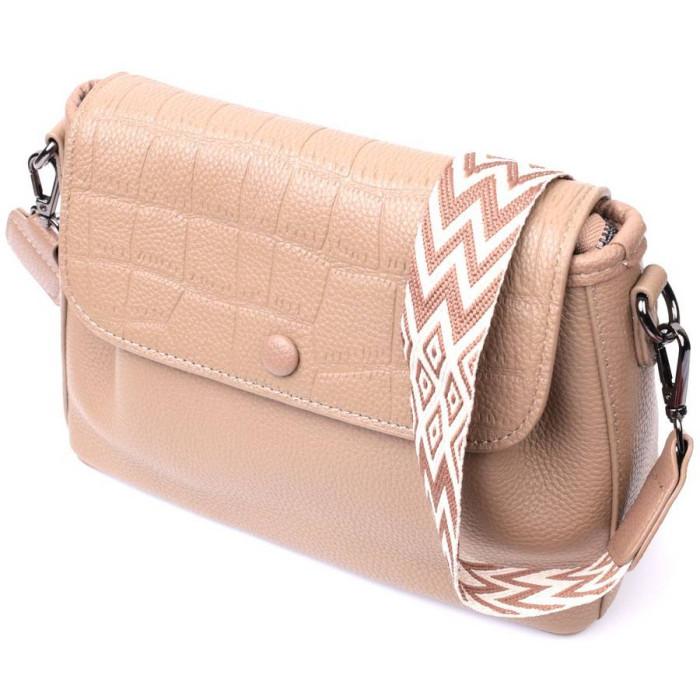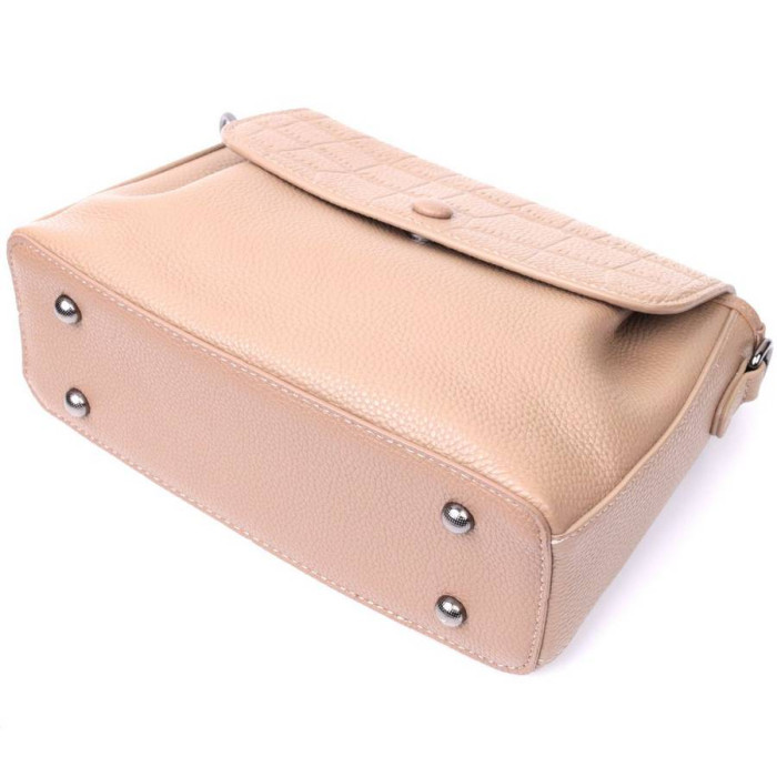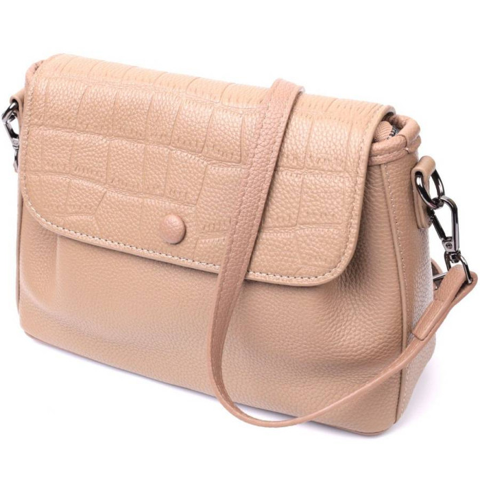 Интересная сумка с фактурным клапаном из натуральной кожи флотар, которая неприхотлива в уходе и долго носится. Аксессуар состоит из трех основных отделений, двух открытого типа и одного посередине, что закрывается на молнию и имеет потайной карман на молнии, карман открытого типа и кармана на молнии снаружи. Носить сумку можно под рукой, на плече и через плечо, для этого имеются два съемных ремня, текстильный и кожаный. В изделии использована качественная фурнитура цвета темного серебра. Универсальный вариант сумки как на вечер так и в качестве сумочки на каждый день.