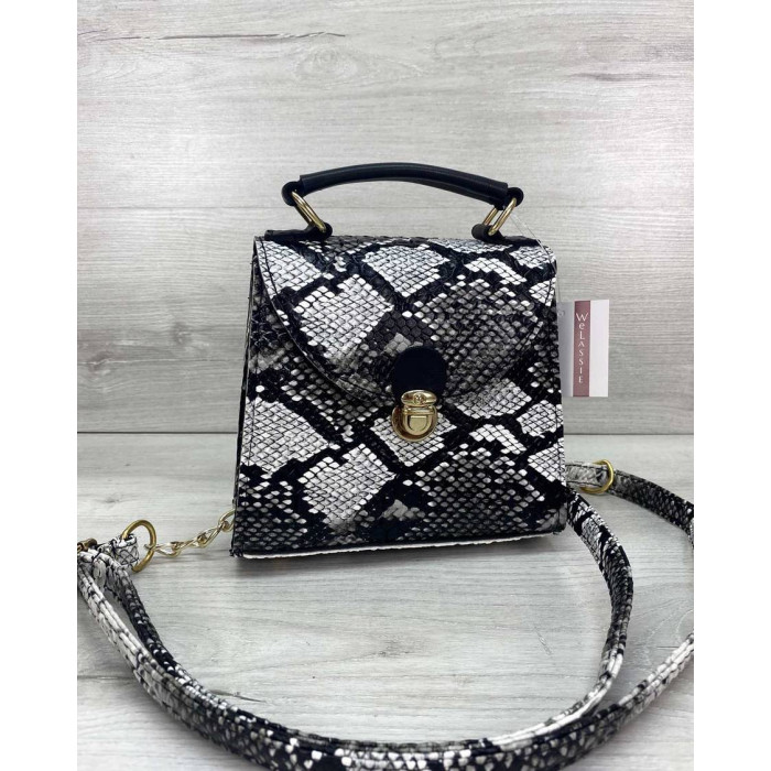 Женские сумки 61701 Welassie (Украина) кожзам высокого качества. Рисунок не однородный. Сумка имеет одно отделение. Сумка закрывается при помощи защелки. Внутри сумка без подкладки, имеет одно отделение. В комплекте есть регулируемый плечевой ремень с цепочкой, максимальная длина 135 см.. Размеры сумки: длина 17 см., ширина 8 см., высота 16 см.