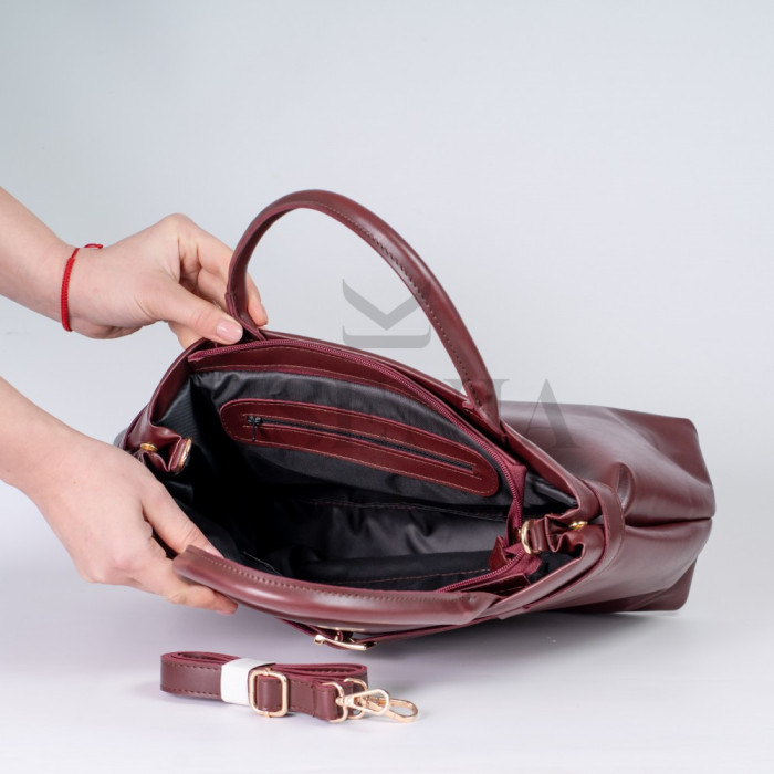 Цвет: бордовый+ экозамша Длина: 37 Ширина: 13 Высота: 24 Количество отделений: 1 основное отделе..