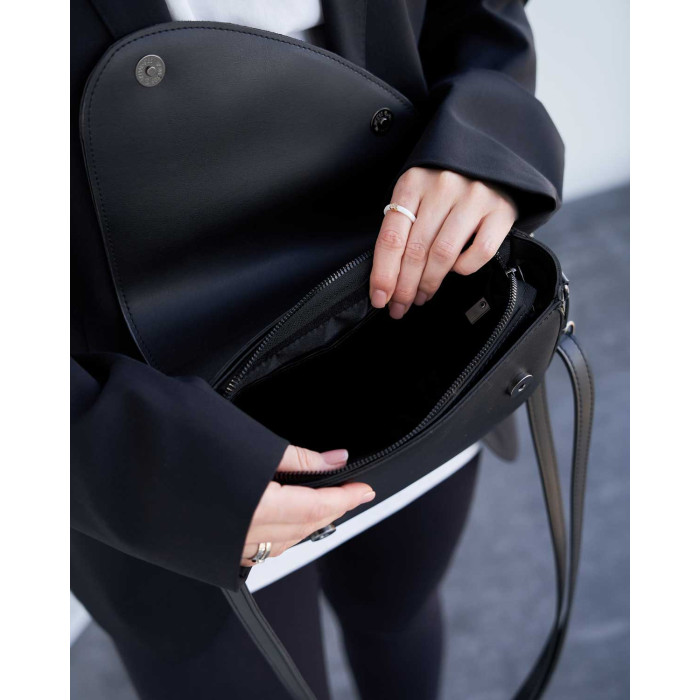 Сумка женская 11004 от производителя «Welassie» Украина, цвет черный, материал сумки экокожа высокого качества. Сумка открывается при помощи магнитов под крышкой, и молнии. Сумка на плотной, качественной подкладке. Внутри имеет открытый карман. Так же имеется карман на молнии снаружи.