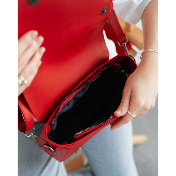 Сумка женская 11006 от производителя «Welassie» Украина, цвет красный, материал сумки экокожа высокого качества. Сумка открывается при помощи магнитов под крышкой, и молнии. Сумка на плотной, качественной подкладке. Внутри имеет открытый карман. Так же имеется карман на молнии снаружи.