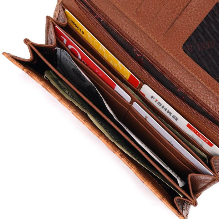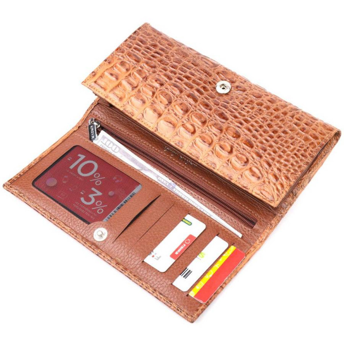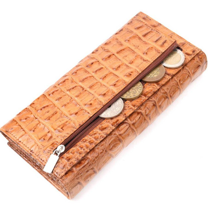 Красивый женский кошелек из натуральной фактурной кожи, с тиснением под крокодила. Складывается аксессуар пополам, закрывается клапаном на кнопку. Качественная фурнитура дополняет и украшает изделие. Такой кошелек из натуральной кожи - это идеальный вариант на каждый день для тех, кто ценит качество, удобство и комфорт, а также будет отлично дополнять Ваш повседневный образ. Упакован аксессуар в фирменную коробку и пакет бренда. Изделия из натуральной кожи всегда будут отличным подарком для близкого человека.